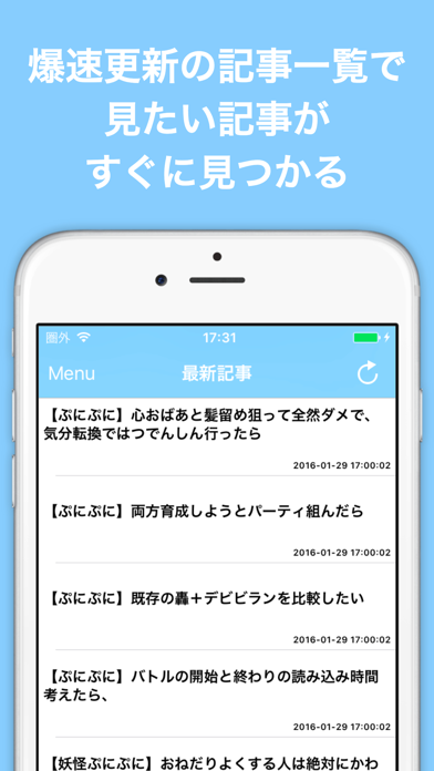 1タップの超簡単操作で最新の妖怪ぷにニュースがサクサク閲覧可能!