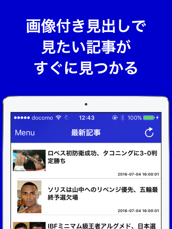 1タップの超簡単操作で最新のボクシングニュースがサクサク閲覧可能!