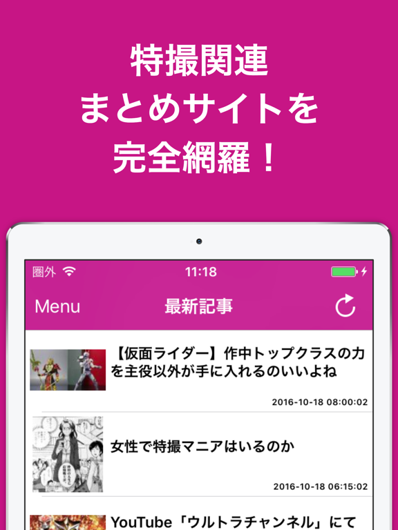 1タップの超簡単操作で最新の特撮ニュースがサクサク閲覧可能!