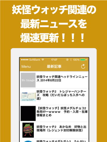 1タップの超簡単操作で最新の妖怪ウォッチニュースがサクサク閲覧可能!