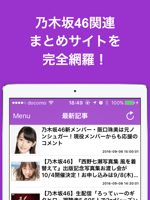 1タップの超簡単操作で最新の乃木坂46ニュースがサクサク閲覧可能!