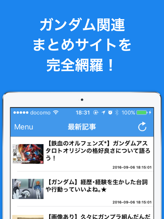 1タップの超簡単操作で最新のガンダムニュースがサクサク閲覧可能!