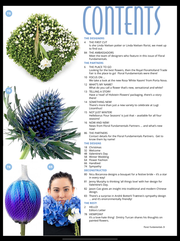 Floral Fundamentals aims to share practical information about flowers, plants and new sundry products used in the floral industry. Florists are now able to connect directly with growers and suppliers by subscribing free of charge to the digital magazine. Floral Fundamentals aims to show practical, commercial ideas that will give florists a design edge over supermarket products. In turn, growers can ask for feedback about their flowers and plants. Florists will then be able to ensure that they use professional growers supplying excellent flowers. In certain cases, growers and sundry suppliers will ensure that these products will not be available via supermarkets or chain stores.