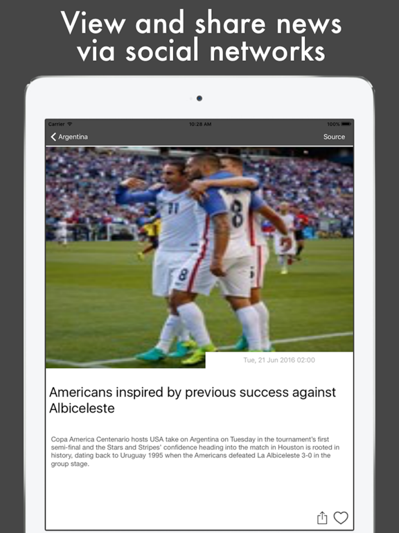Everything you have to know about the greatest football-playing countries of the world: Belgium, Germany, Portugal, England, Spain, Brazil, Italy, France, Argentina, Austria, Uruguay and others. From the opening of cups to the final, and everything in-between, this app provides all news you have to know about the teams, players, matches, standings and much more!