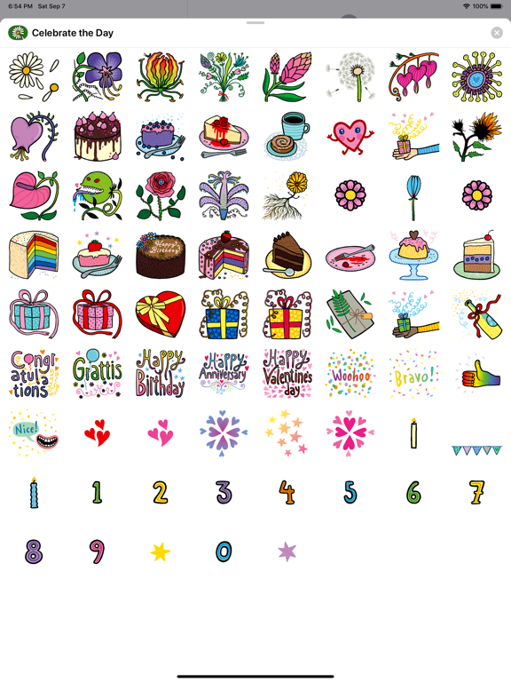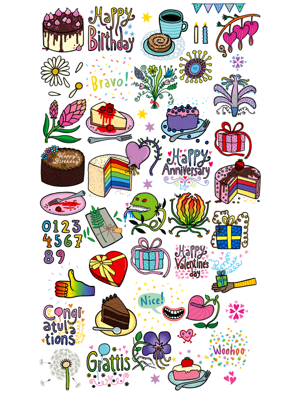 A colorful and cute sticker pack full of different ways to celebrate anything you can think of: anniversaries, Valentine’s day, and birthdays of course (both in English and Swedish) or just for something fun that needs a thumbs up and a “woohoo!”