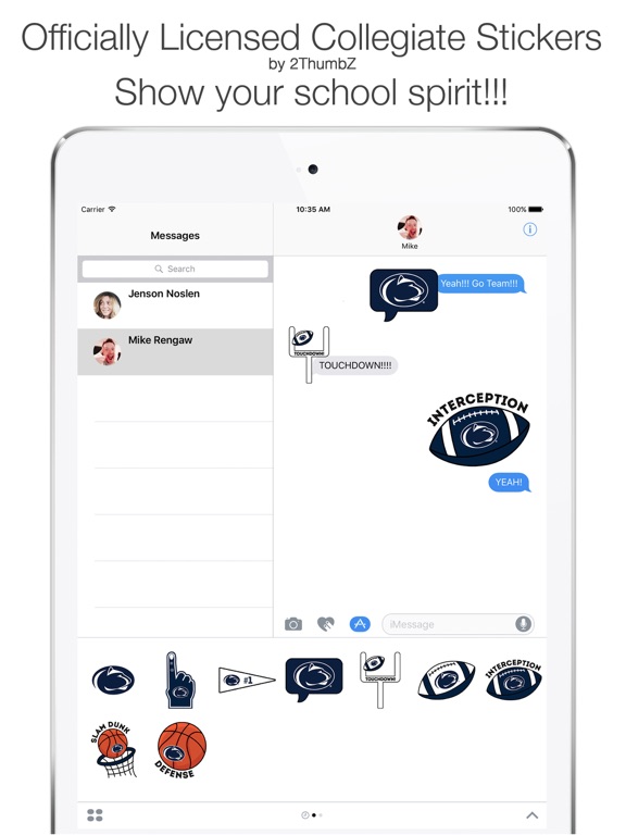 This is an officially licensed Sticker Pack from Penn State University. These stickers can be used in iMessage to show your school spirit in text messages and on photos. Have fun and Go Penn State!!