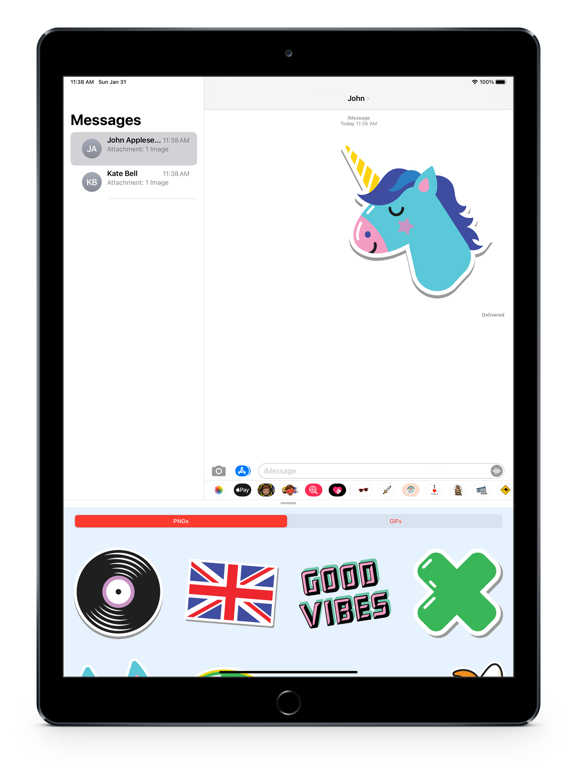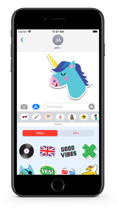 Ajoutez des stickers directement dans vos conversations iMessages et WhatsApp. Touchez celui qui vous plaît et envoyez-le.