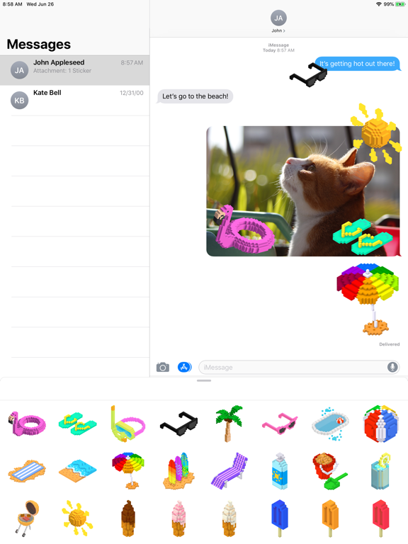 Super Summering is a vibrant sticker pack that includes many options for you to share with your friends and family when your having super fun in the sun. It combines the fun of the summer season with the fun of video games using a stylized 3D pixel art look.