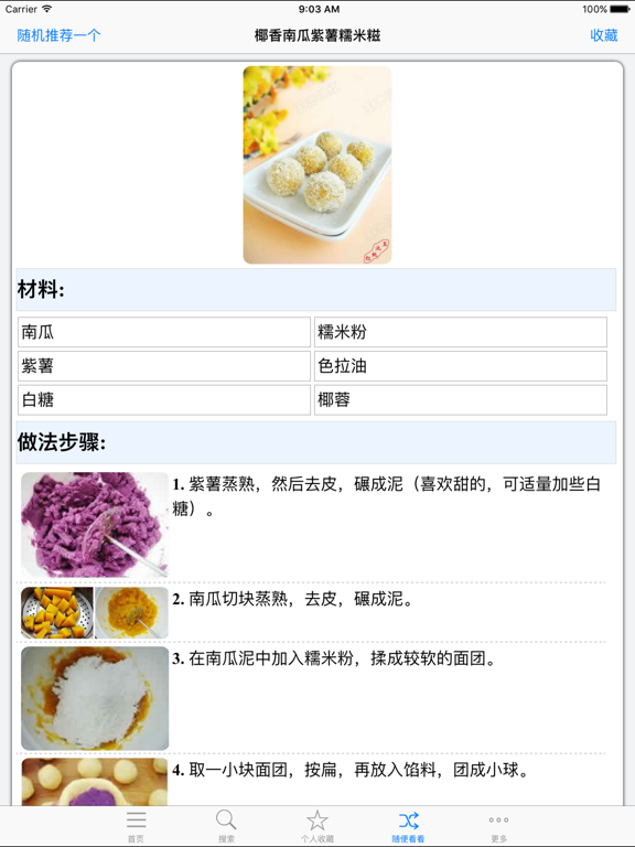 精心挑选甜品点心做法食谱,配以详细的食材,搭配、调味方法介绍,让你玩转厨房!离线数据,全设备通用。一键收藏,摇一摇随机选择菜谱,支持全文搜索。