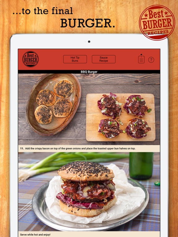 BEST BURGER RECIPES is the first step-by-step burger app to explain simply and clearly how to make delicious home-made burgers, fluffy buns, delightful sauces and ideal side-dishes.