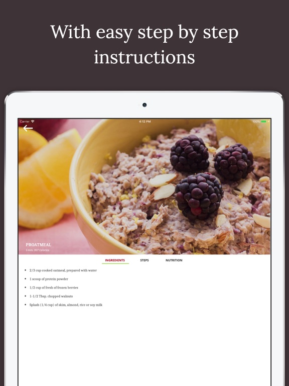 - Calories & Macros: All recipes include calorie, protein, carbohydrate and fat break down