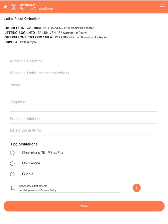 -Inviarci una richiesta di prenotazione ombrellone