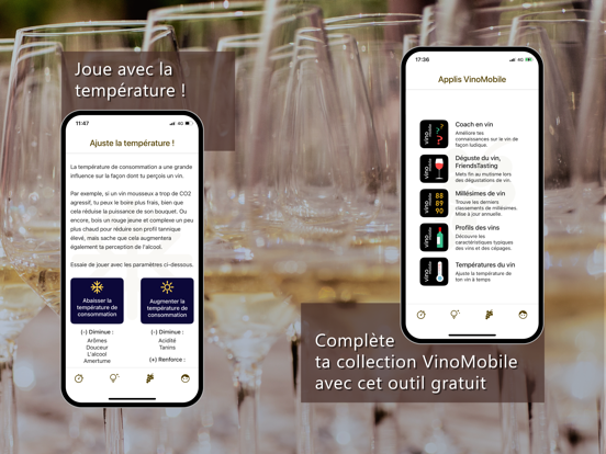 Assure-toi que ton vin est servi à la température parfaite grâce à notre application dédiée, disponible gratuitement !