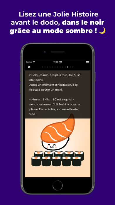 Le Jolidex passe automatiquement en mode sombre à la nuit tombée. Il est ainsi possible de profiter des Jolies Histoires dans le noir avant le dodo :)