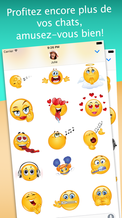 Magnifique pack d'autocollants emojis animés à utiliser dans toutes tes conversations sur iMessage.