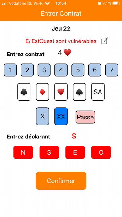 Saisissez les contrats après les enchères et enregistrez les scores après le jeu. Obtenez un aperçu complet du programme du tournoi pour les différentes paires et tables.