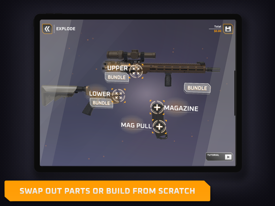 GUNSTRUCTION features multiple weapon platforms, with more being added all the time. There is an in-app purchase available to unlock Photo Mode, Paint Mode, more save slots, and access to older "legacy parts".