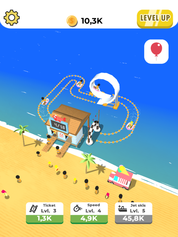 Get unbelievable jet skis and race circuit and upgrade your park to be the biggest one !