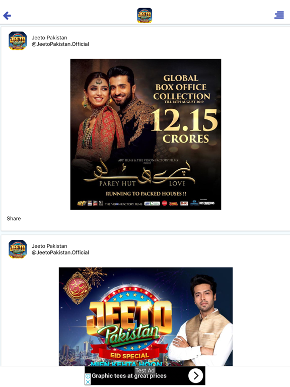 Jeeto Pakistan Shows iOS Universel / Divertissement Gratuit Obtenir sur l'App Store Catch the latest episodes and happenings of Pakistan's Biggest Game Show Jeeto Pakistan on your tips. En voir plus... D'autres applications du développeur ARY DIGITAL/ iOS Universel ARY ZINDAGI/ iOS Universel ARY NEWS URDU/ iOS Universel Karachi Kings/ iOS Universel ARY ZAUQ v2/ iOS Universel ARY NEWS PRO/ iOS UniverselVoir toutes les apps