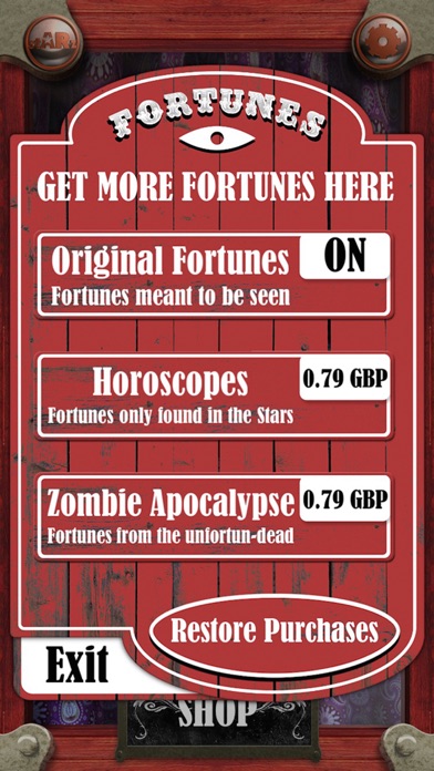 Once downloaded the app comes to you with 25 preloaded fortunes for you to personalise. You may wish to expand this collection with some of the additional fortunes available via in-app purchases.