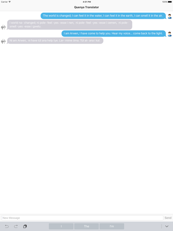 Convert from English to Quenya. Quenya is one of the many languages spoken by immortal Elves in J.R.R. Tolkien's novel Lord of The Rings. This Quenya Translator translates the English language sentences to Elvish Quenya equivalents.