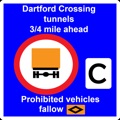 ADR Dartford Dangerous Goods Listing for vehicles carrying dangerous goods. Dartford tunnels are rated as category ‘C’, but with some additional specific operating restrictions relating the escorting of some dangerous goods vehicles, this application is a full listing of the dangerous goods restrictions. The Dartford Tunnels carry the A282 (M25) northbound under the River Thames, to the east of London. There are two tunnels, both subject to a number of restrictions for high-sided vehicles, abnormal loads and those carrying dangerous goods. If you are carrying hazardous goods you must report to the vehicle escort area to be checked before using the tunnels. Vehicles transporting hazardous goods must exit at junction 1a and follow the ‘hollow diamond’ symbol to the vehicle escort area, to be checked before using the tunnels.