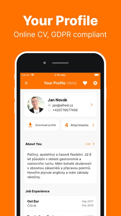 ● Alfred only shares personal data from your profile only when you apply for a job. Personal data is anonymised and secured using the strongest encryption protocols. Your profile can't be searched and Alfred never sells or shares personal data with anyone.