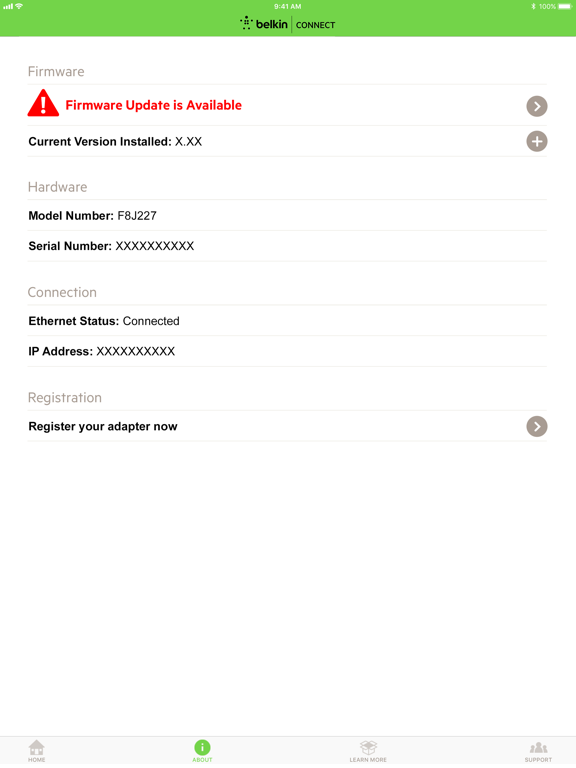 A convenient way to manage your Ethernet + Power Adapter with Lightning Connector’s firmware and access release notes on the most recent update. Know your firmware’s status every time you connect, you can even choose to receive notifications when an update is available. Learn more about your adapter, access the latest update’s release note and connect with Belkin support through this single app.