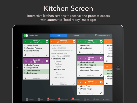 • Kitchen screen keeps covers running smoothly and reduces errors