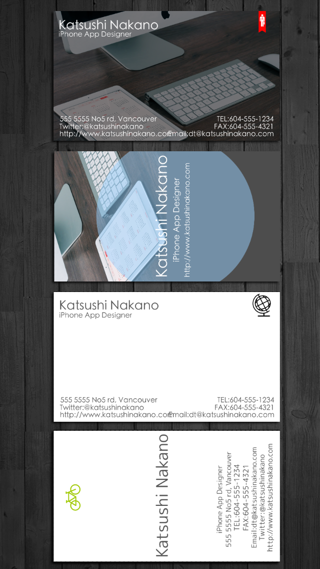 Maintenant, vous pouvez créer votre propre carte de visite originale sur votre iPhone ou iPod touch! Business Card Designer possède de nombreuses options pour vous aider à concevoir votre carte cool!