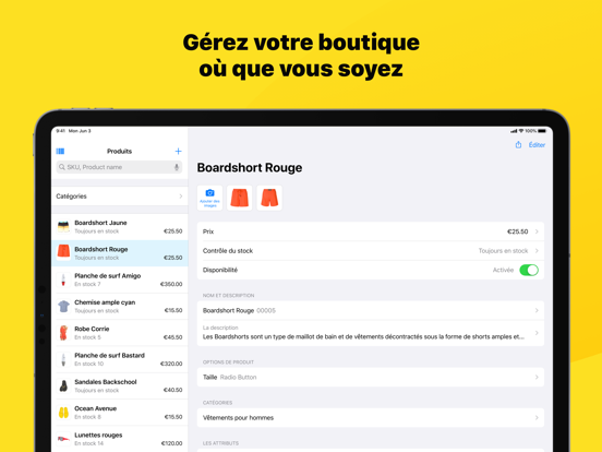 - Contrôlez les niveaux de stock et modifiez la disponibilité des produits