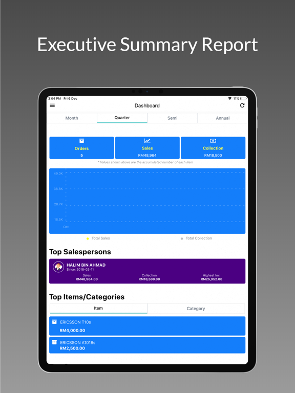 ESReport is designed to help business leaders to take effective business decisions with meaningful business insights. We provide an all in one dashboard for business executives where they can find summary reports on their sales, collections on different time range.