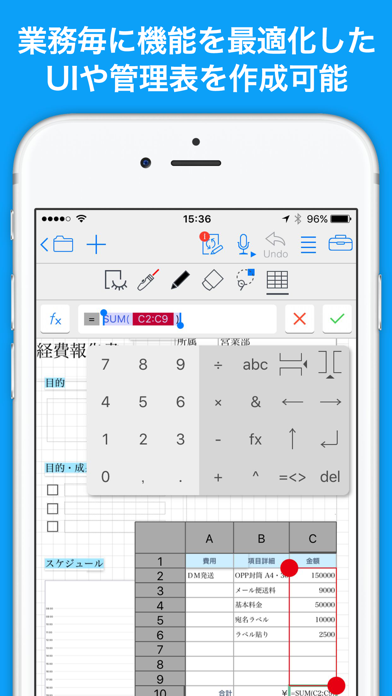 ・自動計算可能な表をノートに貼り付けることができます。