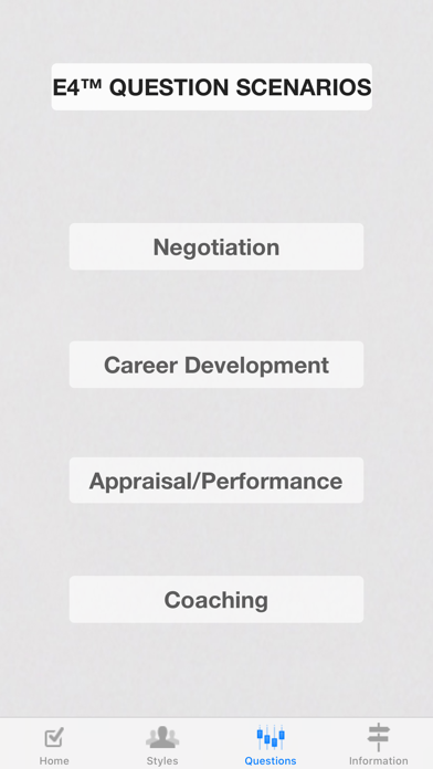 GoodQuestion™ and the E4™ model offer insight into communication and influence styles & ideas to improve on your non-preferred styles. Also included are lots of good questions for 4 situations: coaching, career development, negotiation and appraisal/performance management.
