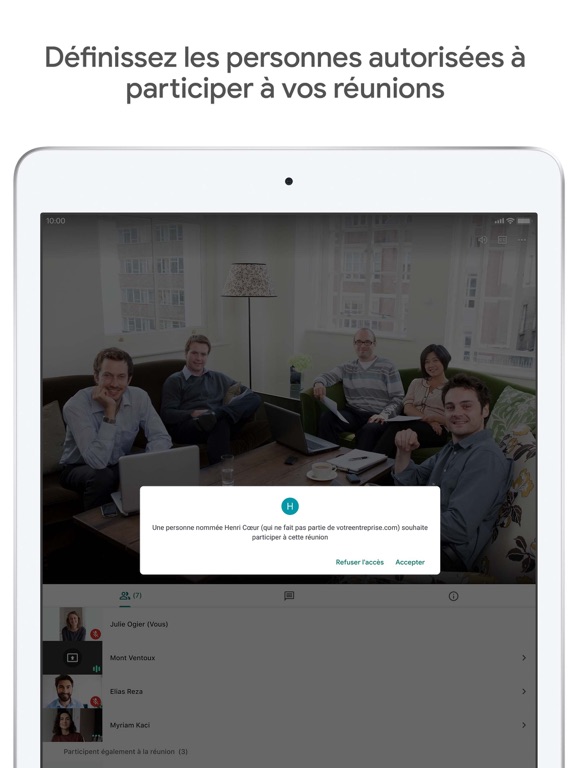 Communiquez et collaborez, partout et de manière sécurisée. Google Meet permet d'organiser et de rejoindre des visioconférences de haute qualité, sécurisées et réunissant jusqu'à 250 participants.