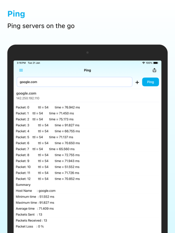 ManageEngine Ping Tool for iPhone offers network monitoring capability from your mobile. You can get the complete view of what is happening across your LAN and Websites.