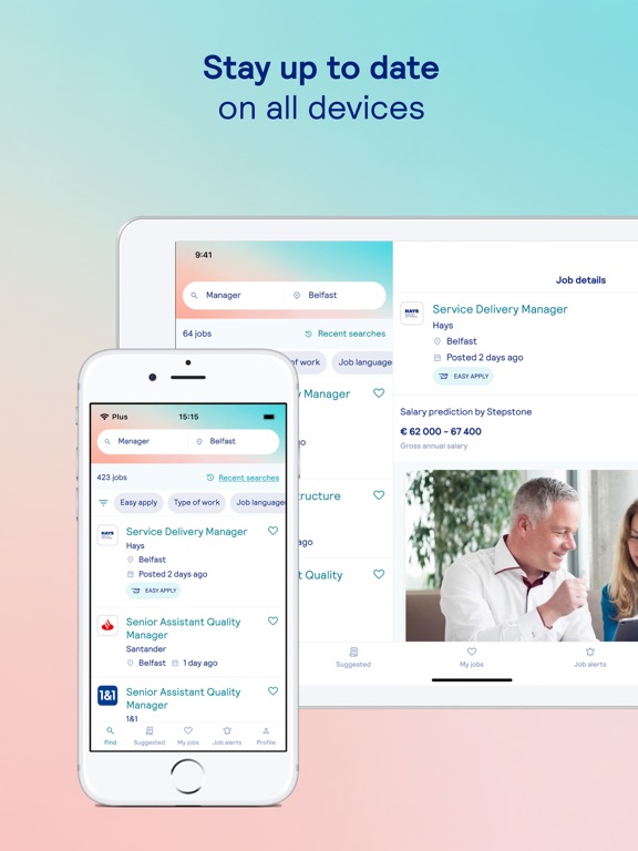 Create a profile and synchronise your job search across all devices. Save your favourite jobs on the go and find them later on your desktop. Easily keep track of which vacancies you’ve applied for.