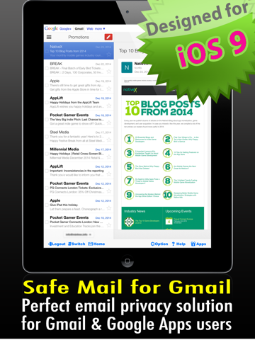 Safe Mail for Gmail Free : secure and easy email mobile app with Touch ID to access multiple Gmail and Google Apps inbox accounts