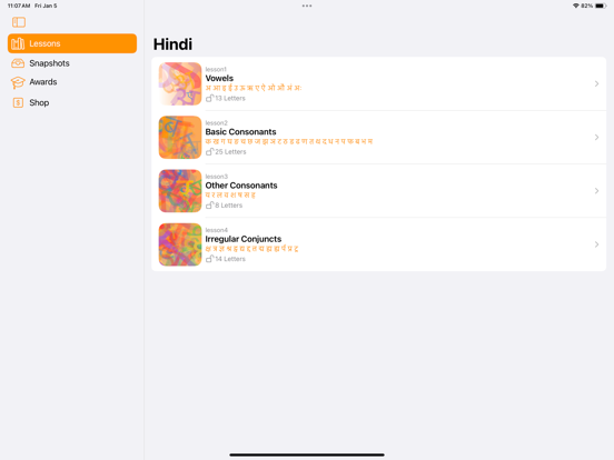 •Complete Hindi Alphabet Coverage: Learn all 60 Hindi characters, including conjuncts.