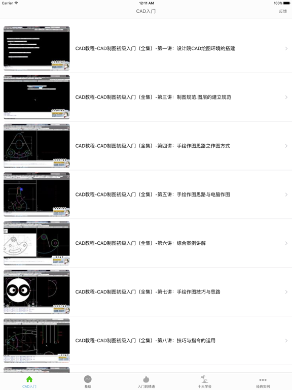 带视频功能的CAD教程苹果应用,另有图文并茂教程,易学又易懂。