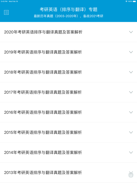 1. 增加最新2020年考研英语真题;