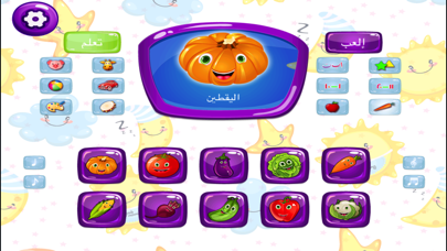 أسماء الخضراوات :يتعرف الطفل على أسماء الخضراوات التي يأكلها وعلى الوانها الجميلة من خلال الضغط على شكلها واسمها وهذا ما سيشعه على طلبها لأكلها فهو كما نعلم جديد الكلام وقاموسه اللغوي في بدايته .