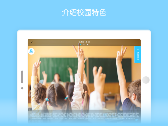 泰迪招生是一款专门针对校园招生的app,学校可以随时随地的向家长展示校园特色,在介绍校园风采的过程中,及时的记录下家长的信息,方便后期招生跟进。