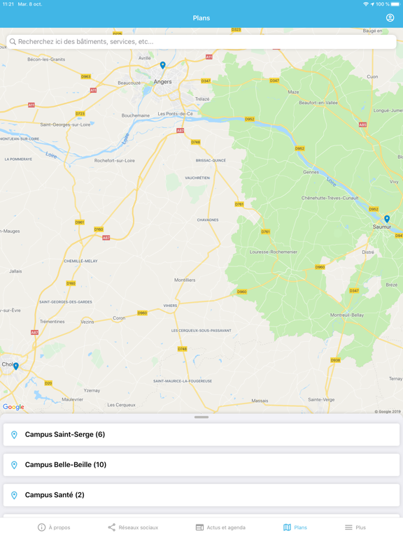 -Plans : repérez-vous facilement sur tous des campus, calculez votre itinéraire et consultez les coordonnées postales et téléphoniques avec appel direct possible.