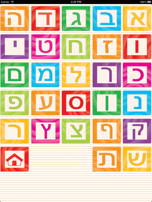 מסך זיהוי אותיות -שבו לחיצה על כל אות משמיעה את שם האות