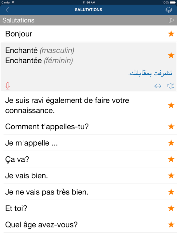 Apprendre l’arabe comprend plus de 800 expressions et termes en arabe pour les voyageurs et les débutants. Cette app vous permet d’apprendre grâce à notre répétiteur arabe. Celui-ci travaille main dans la main avec vous afin que vous vous entraîniez à parler et à écouter, où que vous soyez et quand bon vous semble. Apprendre l’arabe n’a jamais été plus facile.