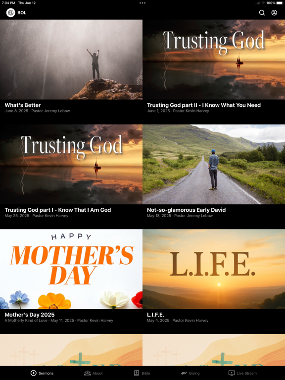 This app will help you stay connected with the day-to-day life of Breath of Life Church. With this app you can: watch or listen to past messages; stay up to date with push notifications; share your favorite messages via Twitter, Facebook, or email; and download messages for offline listening.