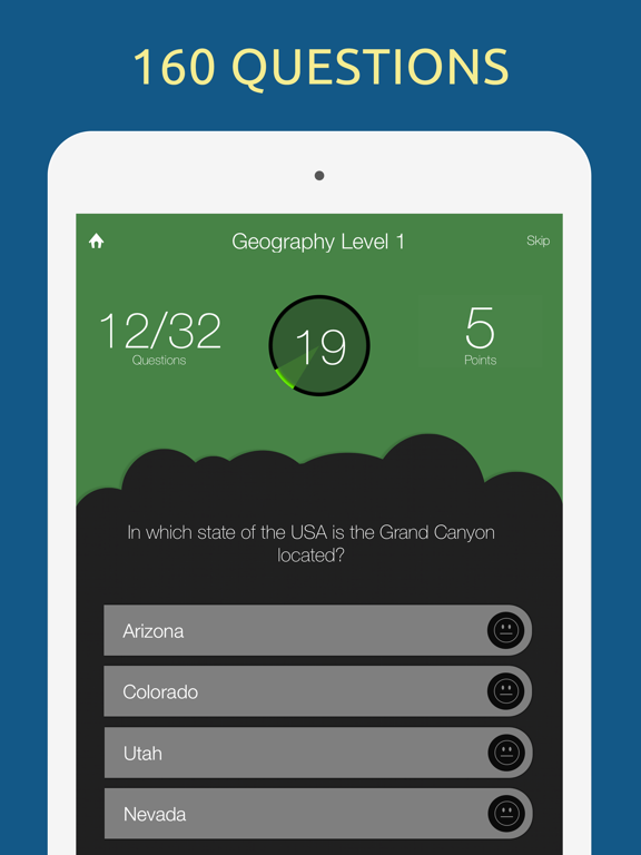 Trivia questions and answers are shuffled randomly every time you play. You can skip a question, if you don't know the answer. Play multiplayer one on one with your friends!