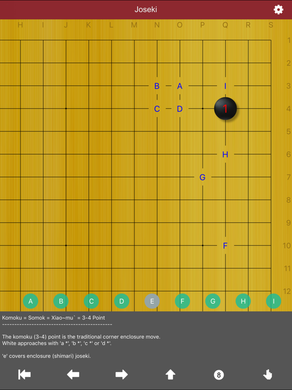 In Go, joseki (定石 jōseki?) are studied sequences of moves in the corner areas of the Go board, for which the result is considered balanced for both black and white sides. Because games typically start with plays in the corners, players often try to use their understanding of joseki to gain local advantages in the corners — advantages which can in turn make for a better overall position. Though less common, there are also joseki for the middle game. In Japanese, 定 (jō) means "fixed" or "set" and 石 (seki) means stones, giving the literal meaning "set stones", as in "set pattern". In Chinese, the term for joseki is 定式, dìngshì.