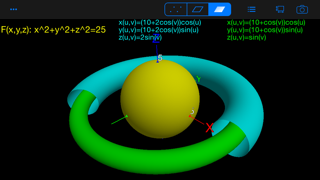 - cartesian x(y,z), y(x,z), z(x,y), cylindrical x(p,φ), y(p,φ), z(p,φ), spherical r(θ,φ) graphs (parametric xyz(u,v) and implicit in Pro version)